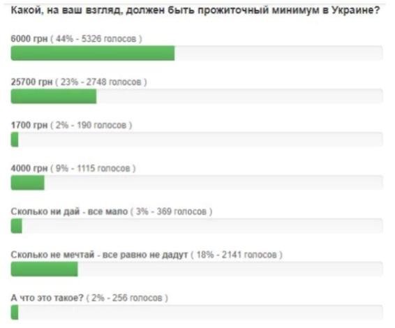 Один из независимых порталов электронных СМИ провел опрос ожиданий украинских граждан насчет прожиточного минимума и получил такие результаты: